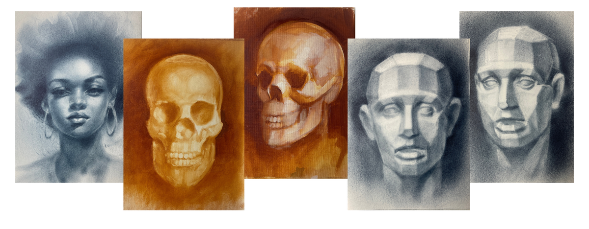 Научитесь правильно передавать форму головы, построение черт лица, работать с глазами, носом, губами — всеми элементами, которые создают живой, объёмный портрет.