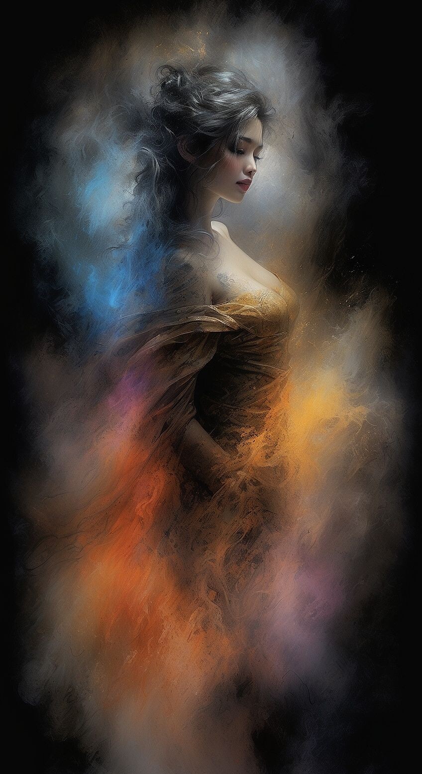 - Фон дополняет образ и усиливает общее впечатление от работы.
