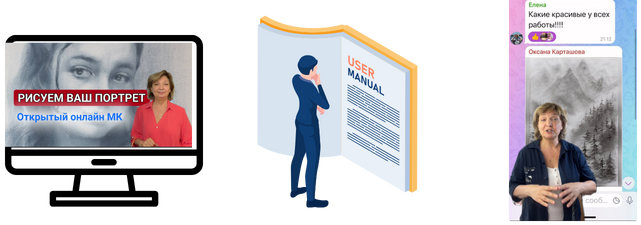 - Здесь вы осваиваете основные приёмы рисования портрета,